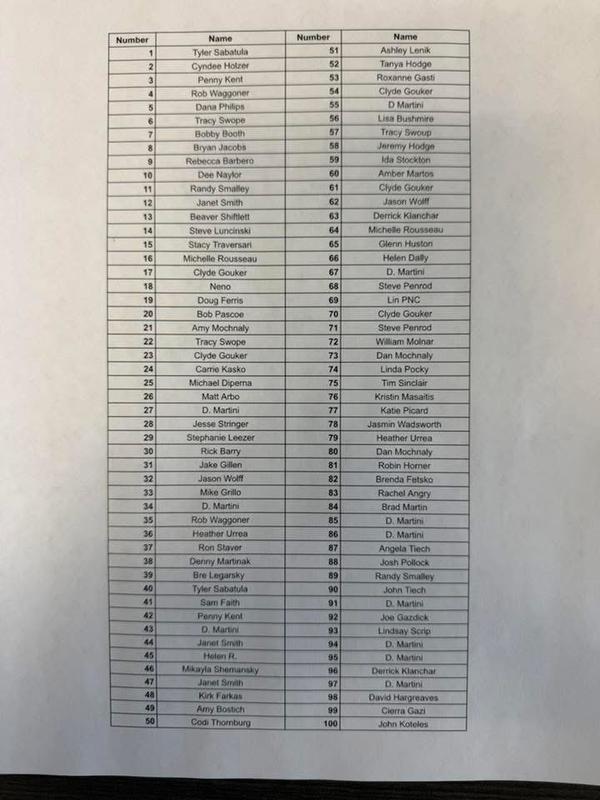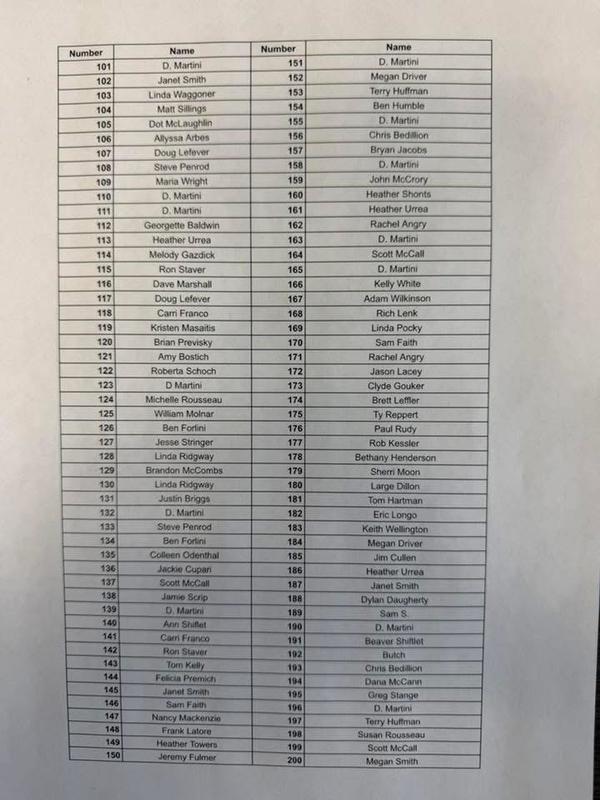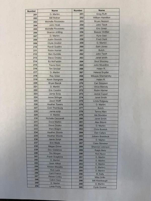 Here is the list of names and numbers for the Golf Cart drawing tonight at 8:30pm live on Facebook